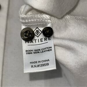 Matiere Men’s Size S White Cotton Black Leather Trim Button Down Shirt