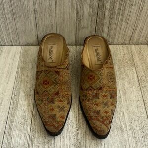 Matiesse Mules Slip On Heeled Shoes Woven Tapestry Pointed Toes