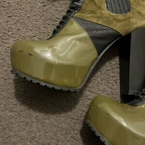 Matiko AI Colorblock Leather Lace Up Platform Heeled Boots