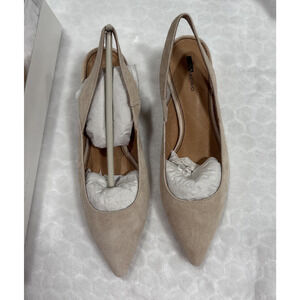 Matiko Circa Peach Pointed Toe Slingback Wood Sphere Heel Shoes US 7.5-8 EU 38