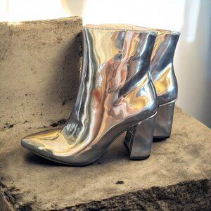 Matiko Silver Mirror Metallic Block Heel Ankle Boots Size 36 US 6