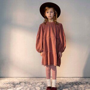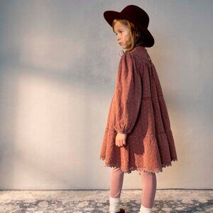 Bebe Organic is constantly looking for creativity in processes and technologies that reduce environmental impact and provide a sustainable and safer choice for children skin and the earth. Beautiful Matilda dress in fully embroidered cotton and with lace detailing and ruffled collar neckline is dyed in natural/organic dye to bring you the most sustainable and clean garment on the market. They have used a natural dyeing process that has completely redesigned and revolutionized the harmful, conventional dyeing methods and offers a 100% chemical-free approach, guaranteeing quality and duration. Please note: Matilda dress in natural is undyed/raw color. Composition: 100% organic cotton Take care: Machine wash, tumble dry low, iron when little wet. Do not bleach or use oxidizing agents. Please use environmentally friendly detergents. Fit: Sizes are indicated in years, choose closest to your child's age.