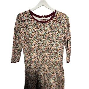 Matilda Jane 435 Courtney Burgundy Floral Print Dress Size 14 Drop Waist Ruffle