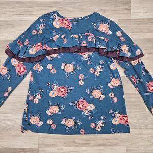 Matilda Jane 435 Girls Teal Floral Ruffle Longsleeve Shirt Size 14
