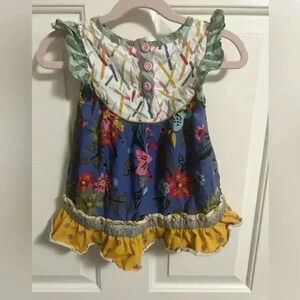 This Matilda Jane top is perfect for any young girl who loves color and adventure. The shirt features a fun and unique design that is sure to make any outfit pop. With short sleeves and a button closure, it's comfortable and easy to wear. The size is perfect for a young girl who wears a size 4. The colorful theme makes it perfect for season changes and is versatile enough to wear in both summer and winter. Just layer a long sleeve underneath to make this top work for the cooler months. The shirt is pre-owned but is in great condition, ready for its next adventure. We wash all of our MJ on delicate and lay flat to dry.