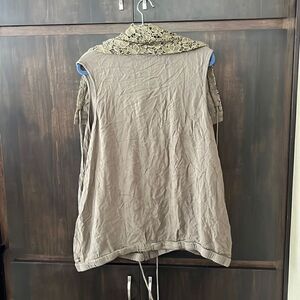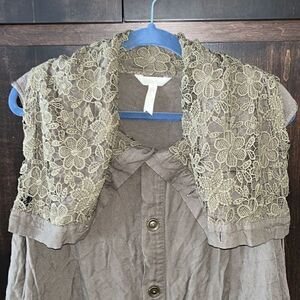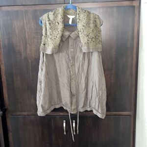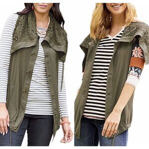 This vest is made by Matilda Jane. It’s an army green color with front buttons and a crocheted neckline. Size XXL and in nice pre owned condition. Smoke and pet free home.