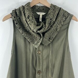 Matilda Jane Ambitious You Green Cape Vest Lace Button Up Floral Womens Size M