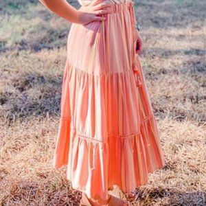 Super soft skirt with beautiful oranges and cut out details. Draw string/elastic waist band.