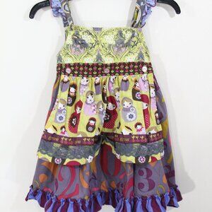 Matilda Jane Apron Knot Delaney Dress sz 6 Girls Russian Nesting Dolls colorful