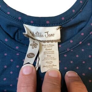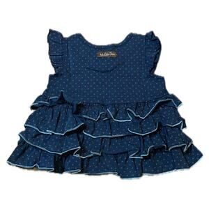 Matilda Jane Baby Girl Lizzy Flutter sleeve Top Ruffles Polka Dots Navy 12 mo