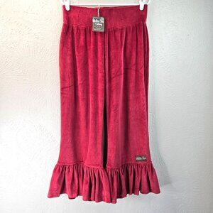 Matilda Jane Big Ruffle Pants M Dark Red Wide Leg Palazzo Gaucho Hippie Pull On (H581)
