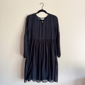 Matilda Jane Black Nostalgia Sheer Dot Lace Tiered Classy Dress - Medium