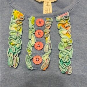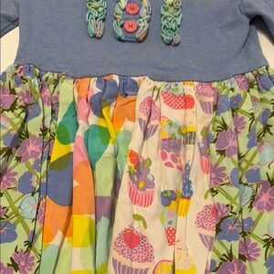 This delightful dress by Matilda Jane showcases a charming blue top with 3/4 sleeves and a crew neck, adorned with intricate embellishments. The pleated skirt flows gracefully, adding a playful touch to its casual elegance.