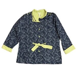 NWT Matilda Jane Brighten the Day Floral Jacket in Blue, size large. DETAILS: This classically beautiful flower print jacket has a soft shell material that is perfect for cool, crisp days and light spring rain. Removable self belted waist and functional front flap pockets. Fully lined with polka dot green fabric. FABRIC: Shell/Woven Lining - 100% polyester Lining - 92% cotton/8% spandex Machine wash cold MEASUREMENTS (approximate): Across the chest - 23 in Length - 28 in FLAWS: None to note!