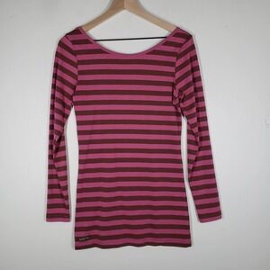Matilda Jane Callie Stripe Long Sleeve Tee Women's S Purple Brown Long Sleeve