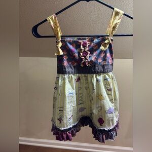 Size 8 top excellent condition no flaws. My daughter wore this as a dress at size 4t the straps are adjustable and the tight in the back can be loosened or tightened excellent condition.