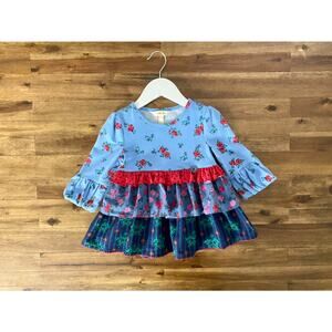 Matilda Jane Choose Your Own Path Feeling Festive Blue Red Green Floral Top 4