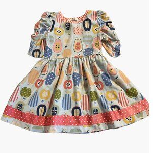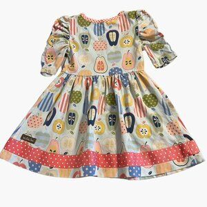 This Matilda Jane Class President Knit Lap Dress, size 2, is perfect for back to school or any adventure. Like new, two dresses available - ideal for twins or multiples. • Matilda Jane Brand • Class President Knit Lap Dress • Size 2 • Back to School design • The Adventure Begins theme • Two dresses available • Ideal for twins/multiples • Like-new condition no flaws to note. Clean smoke free home Features All Over Apple and Fruit Print, Ruched Sleeves and Ribbon Detail at Bottom Hem The Perfect Back to School Dress