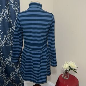 Good, preloved condition. Matilda Jane MJC Make Believe Fall Breeze Jacket Blue Stripes. Peplum. Pea coat. Button front.