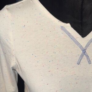 Chic cream blouse with delicate stitch accents. Ideal for casual wear. Never worn