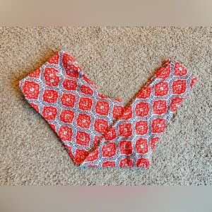 Stylish cream short sleeve top featuring red accents on the sides with matching leggings. Perfect for casual wear. like new