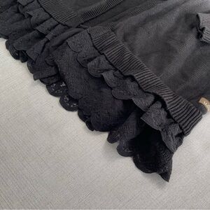 Matilda Jane Dark As Night Cardigan Sweater MEDIUM Black Ruffle Hem Open Front