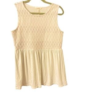 Matilda Jane Dream Chasers Day in the Park Tank Size Medium. Sleeveless pullover style with flowing loose bottom. Stretchy top half. In very good condition. Color is Ivory.