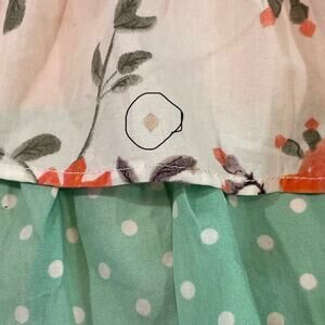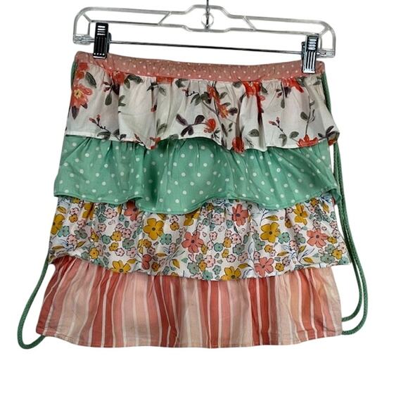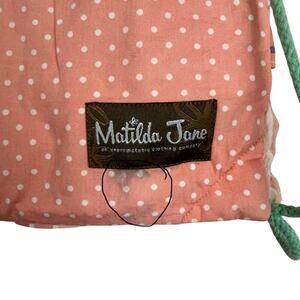 Matilda Jane Dream Chasers "In the Ruffles" drawstring backpack, made of tiered floral & polka dot design with ruffle accents and drawstring closure.