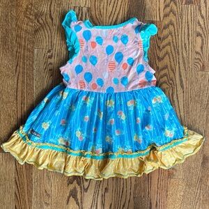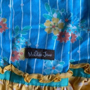 Adorable, whimsical Matilda Jane Dream Chasers balloon dress, size 8. Ruffle on bottom ruffle sleeves, cute print. Like new condition other than missing one button on front panel, see picture. Ships quickly from smoke free/pet friendly home.