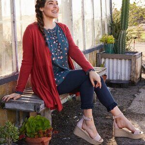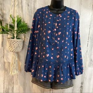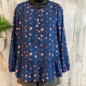 Keep cool, comfy and collected when warm weather arises by donning this button-front top sporting a bright, blossoming print.