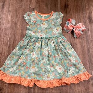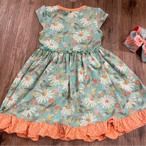 Matilda Jane Dress Girls Sz 6 Bumble Bees Daisy Floral Ruffle Stretchy Twirl