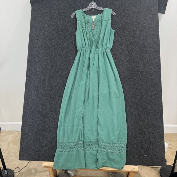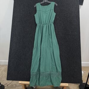 Matilda Jane Dress Women's Medium Green Maxi Button Boho Lace Detail Sundress