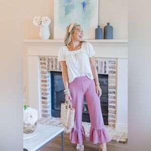 Elegant wide leg pants with flared bottoms. Rich emerald color. Perfect for versatile styling.