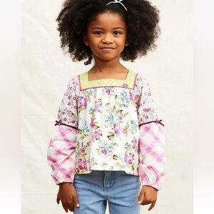 Matilda Jane Enchanted Garden Art School Mixed-Print Peasant Top Size 6
