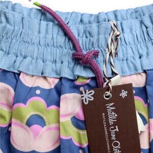 Matilda Jane Enchanted Garden Modern Mix Multi Pattern Skort Girl's Size 6 NWT. Blue green pink floral print with ruffle bottom. Super cute, elastic waist, never worn, tiered skirt with built in bloomers.