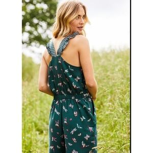 Excellent pre-owned condition. Matilda Jane Evergreen Dream Jumpsuit. Hummingbirds and Butterflies print. Pockets. Size medium