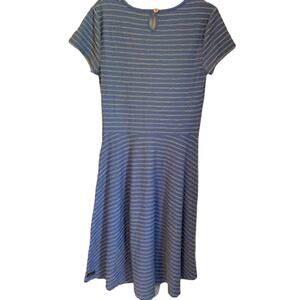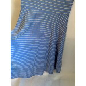 This Scoop neck dress is a purple blue color with beige raised stripes.