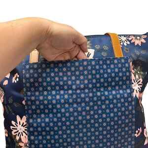Features striped interior. Large bag as shown, can be used for school, diaper bag or laptop bag.