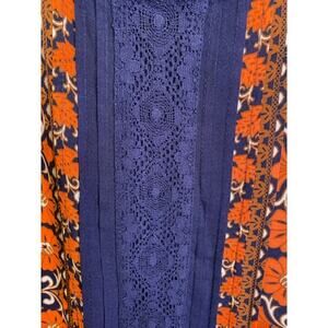Matilda Jane FLORET Women's Top Floral Woven Lace Trim Tunic Orange Navy Size Small