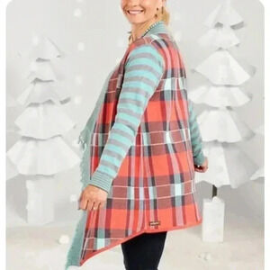 Matilda Jane Fall Plaid Long Open Front Cardigan Sweater M NWT