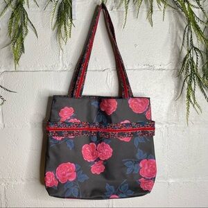 Matilda Jane Floral Heartstrings Tote Easy Clean Pink & Blue Roses