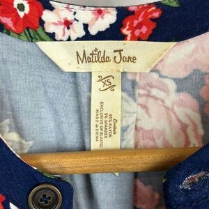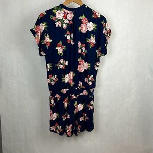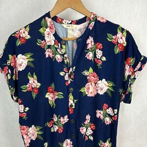 Matilda Jane Floral Romper Sz XS Navy Blue Pink Green Button Front Shorts