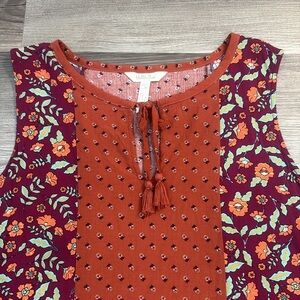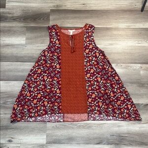 Matilda Jane Floral Sleeveless Tunic Top Rust Size Large Soft Tomato Girl Summer