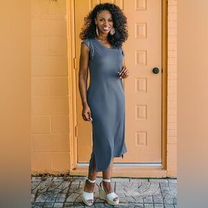 Matilda Jane Flutter Sleeve Rib Knit Blue Midi Dress sz L EUC Whimsical Feminine
