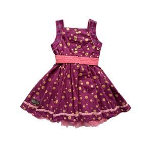 Matilda Jane Nicoletta dress from the Friends Forever collection. Velvet trim, gold polka dots and tulle layer under the hem. No flaws. 100% cotton, tulle is 100% polyester.