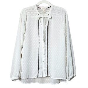 Matilda Jane Friends Forever Renae Top white Swiss dot blouse tie neck button career office neutral