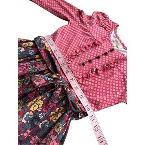 Add charm and color to your little one’s wardrobe with the Matilda Jane Friends Forever Tatiana Dress. This beautifully crafted dress features a vibrant floral skirt paired with a coordinating pink long-sleeve bodice adorned with a dainty diamond pattern. Thoughtfully designed with ruffle detailing and decorative buttons on the front, it offers a sweet, vintage-inspired look perfect for special occasions or everyday twirls. The soft fabric and fitted waist with bow accent ensure both comfort and style.