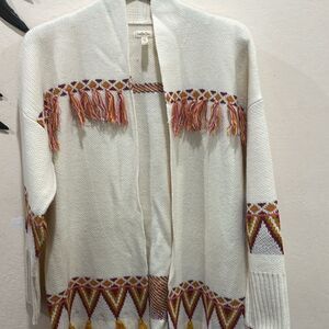 Matilda Jane Ginger Snap Fringe Moments With You Open Shawl Cardigan Sweater - M