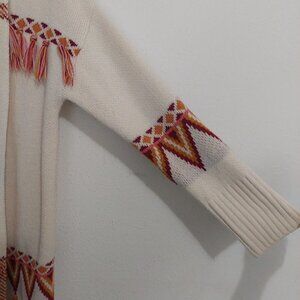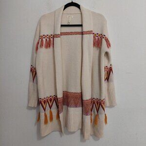 Matilda Jane Womens Sweater Cream Orange Gold Red Fringe Cardigan Size XS