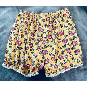 Matilda Jane Girl Size 8 Yellow Floral Lace Hem Shorts Coquette Twee Kidcore